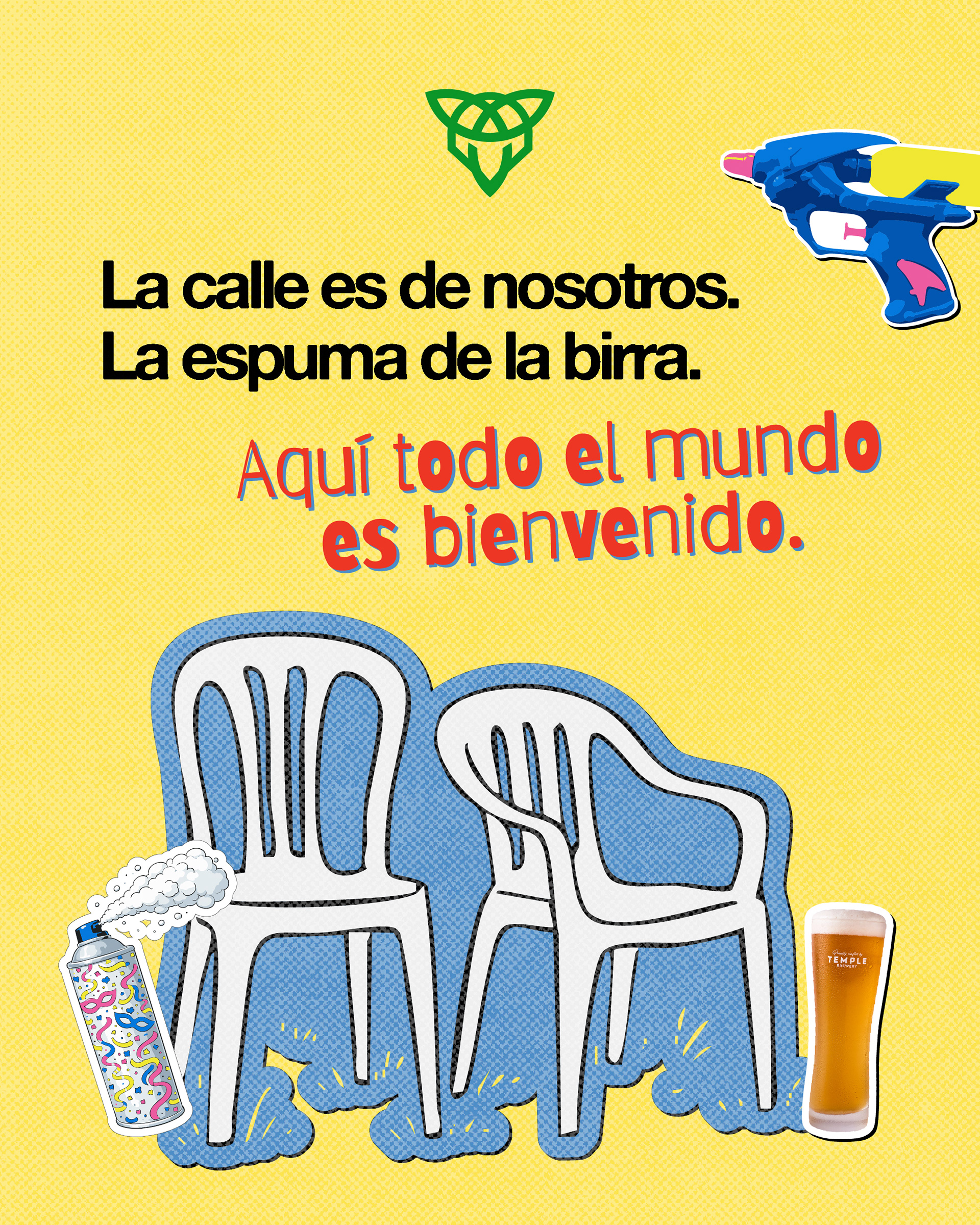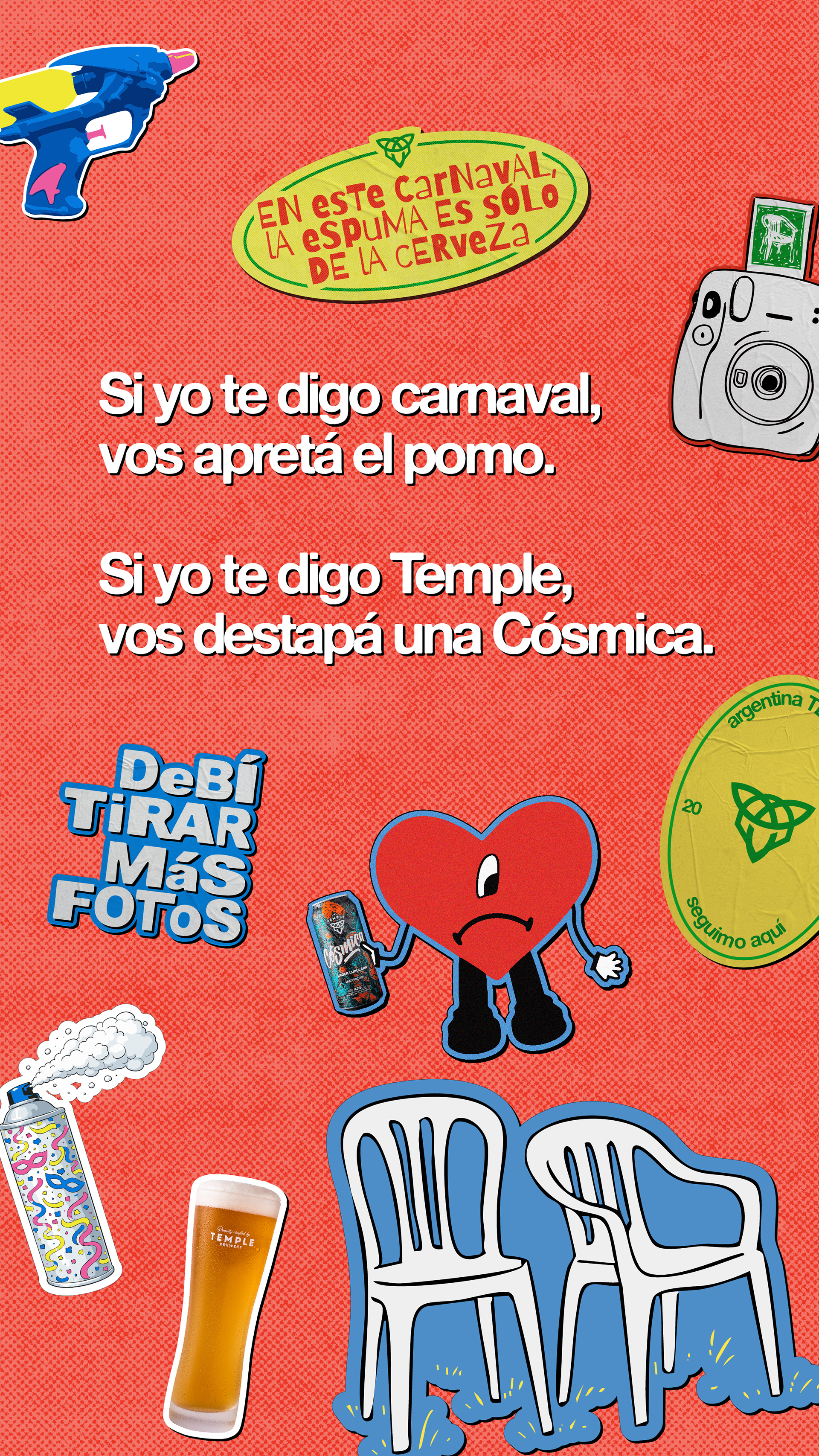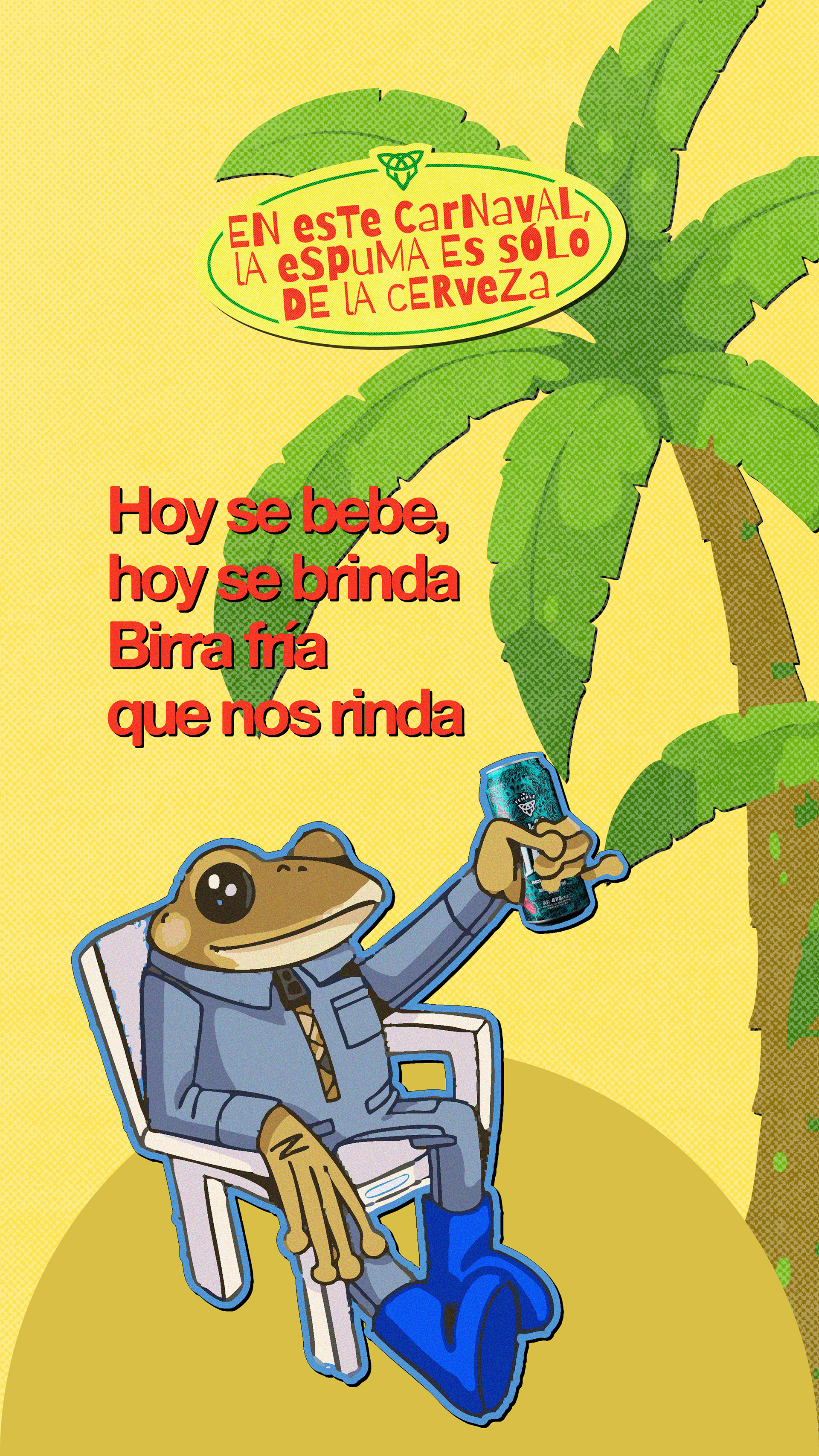 Desarrollo de sistema visual y creatividad aplicada a redes sociales para Temple Cerveza. Diseño de universo gráfico festivo y urbano, con foco en identidad visual y piezas digitales. Trabajo realizado para Chispa Studio.