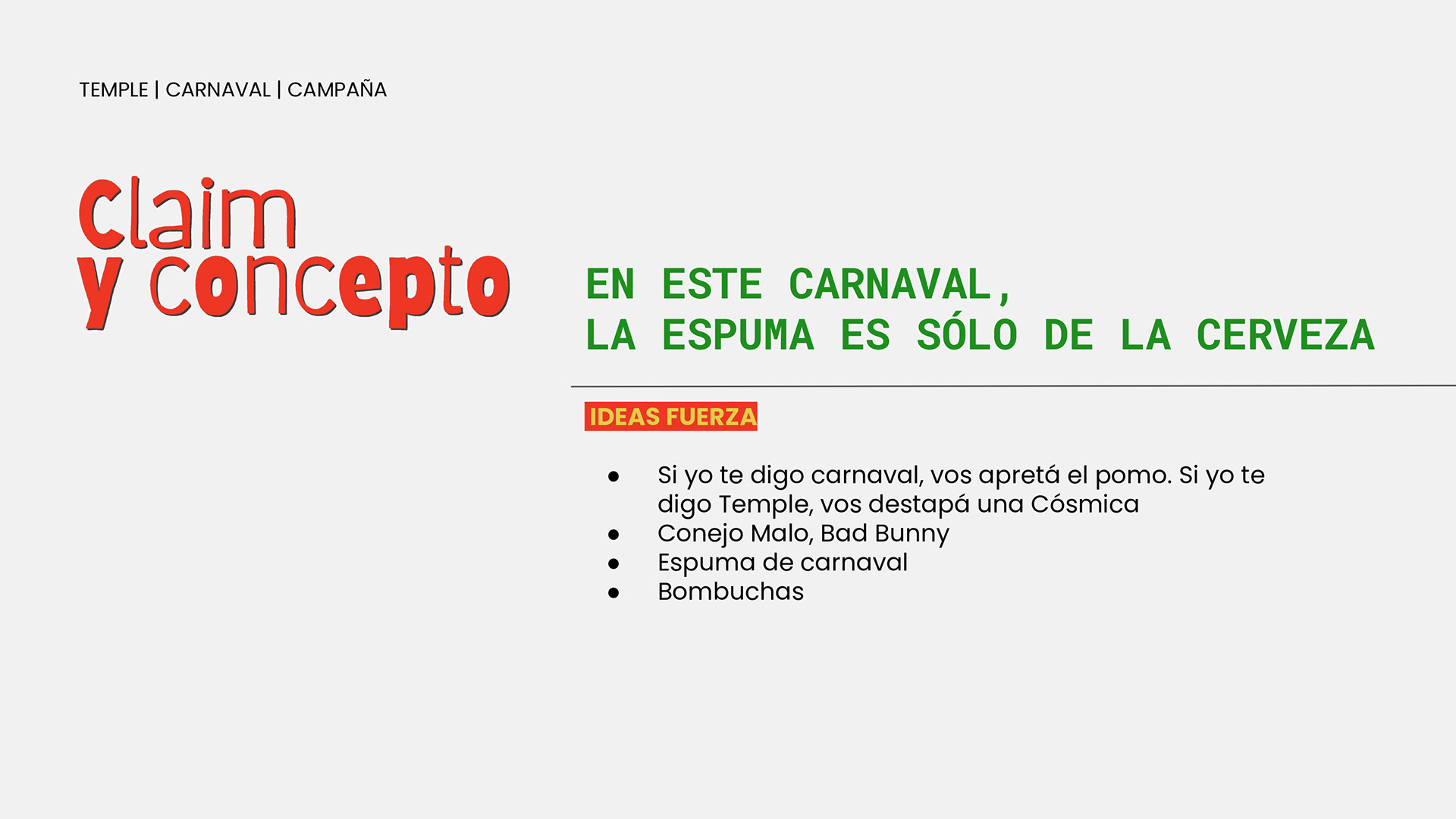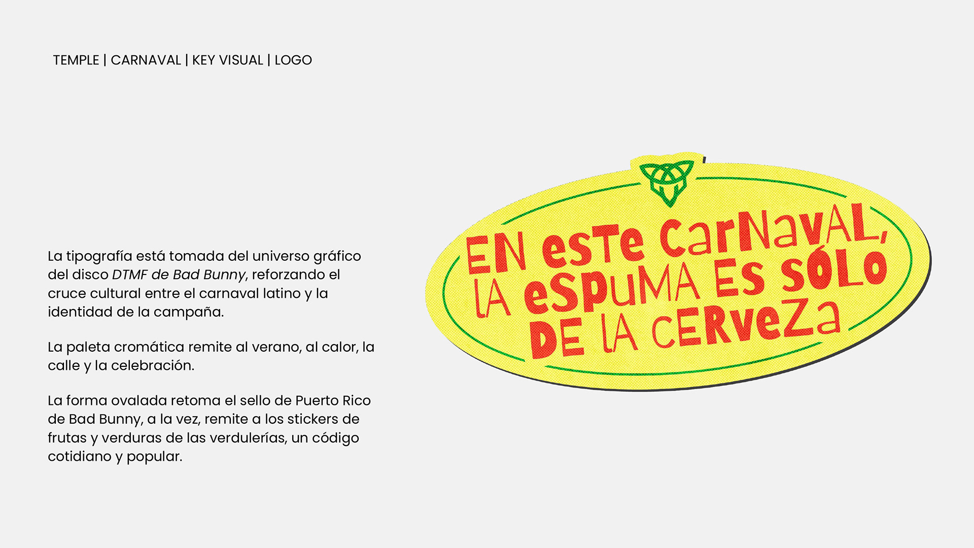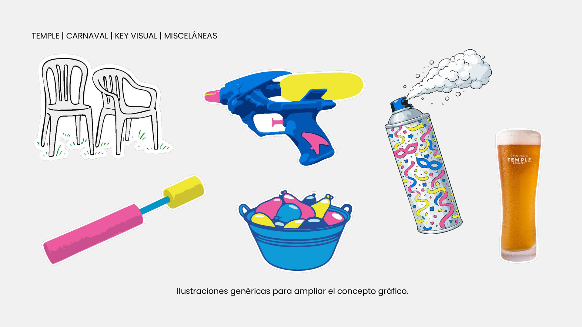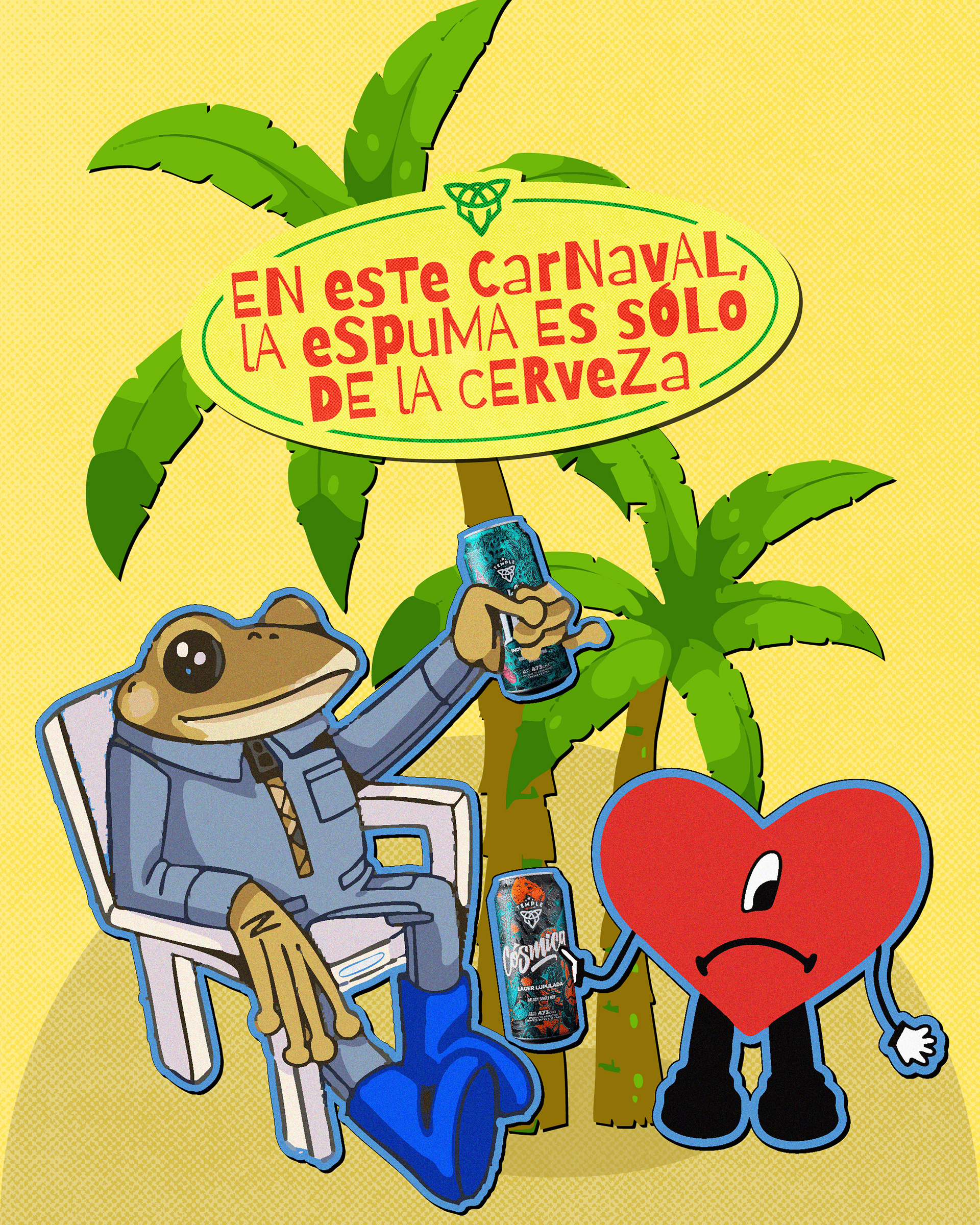 Desarrollo de sistema visual y creatividad aplicada a redes sociales para Temple Cerveza. Diseño de universo gráfico festivo y urbano, con foco en identidad visual y piezas digitales. Trabajo realizado para Chispa Studio.